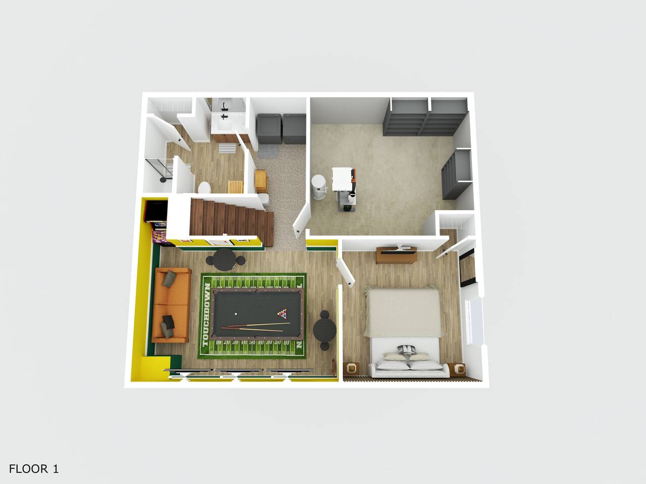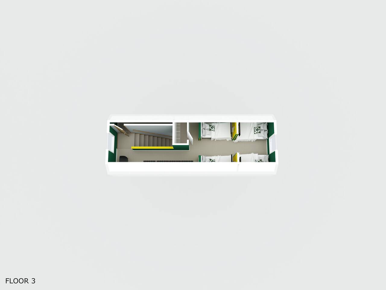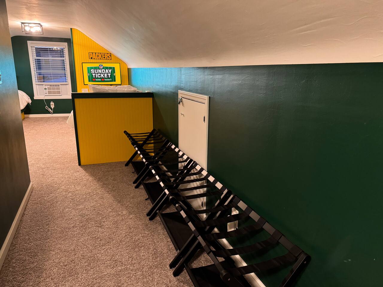 ✔ Packers-Themed Loft – A unique sleeping area for four, each bed featuring its own 32" Roku 4K Smart TV and charging station.