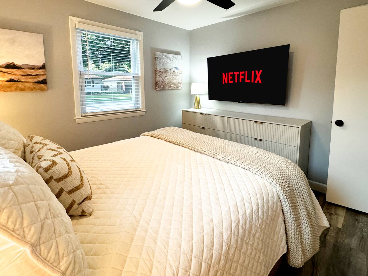 32" Roku 4K Smart TVs at each bed (no fighting over the remote!)
