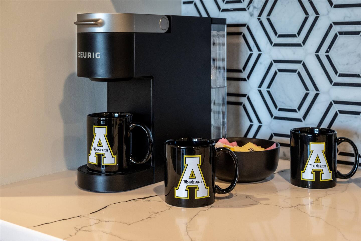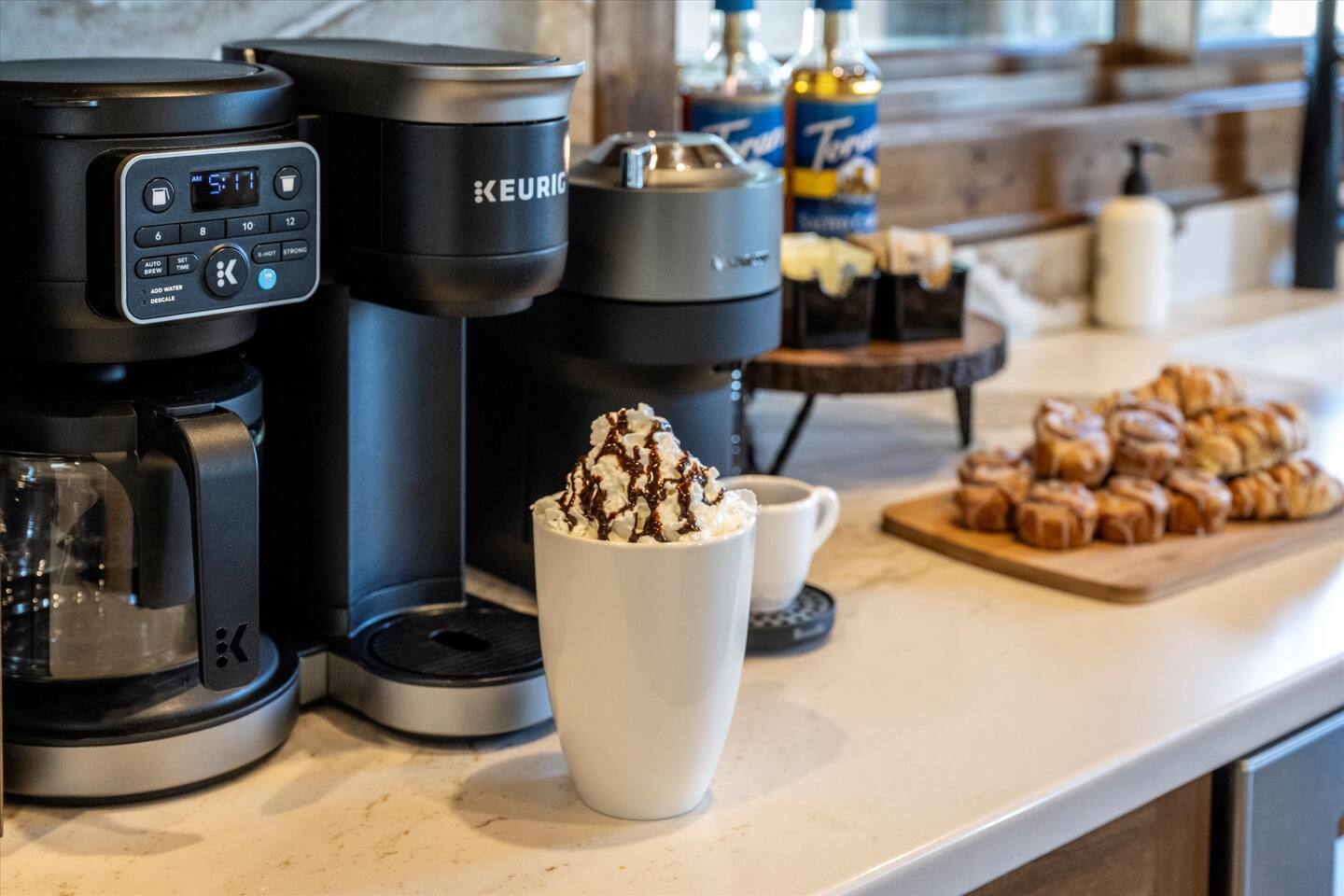 • Wet Bar – undercounter refrigerator, Keurig coffee maker, and mini sink