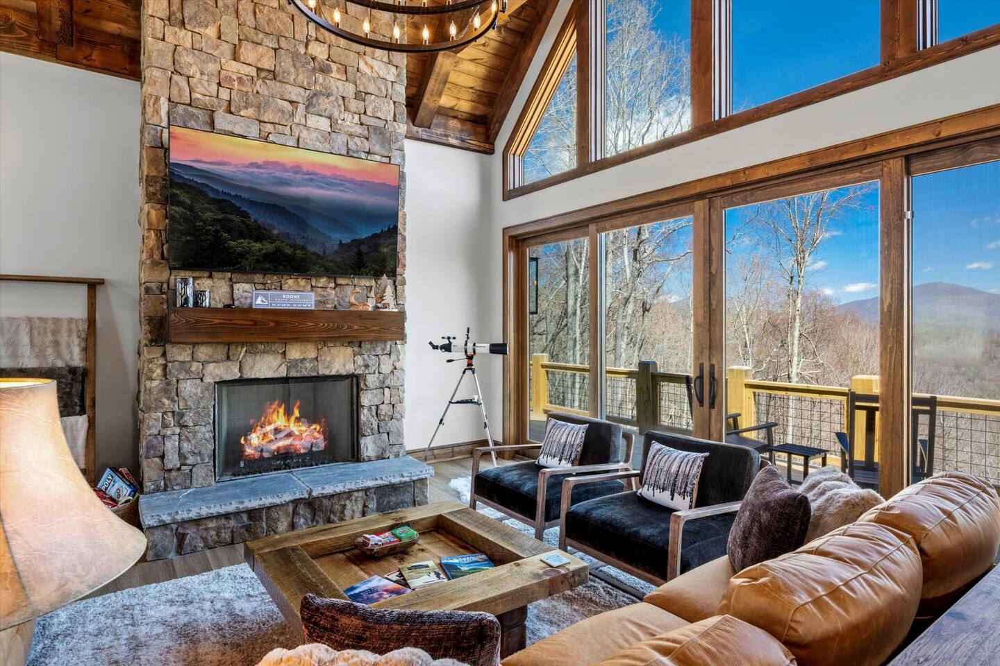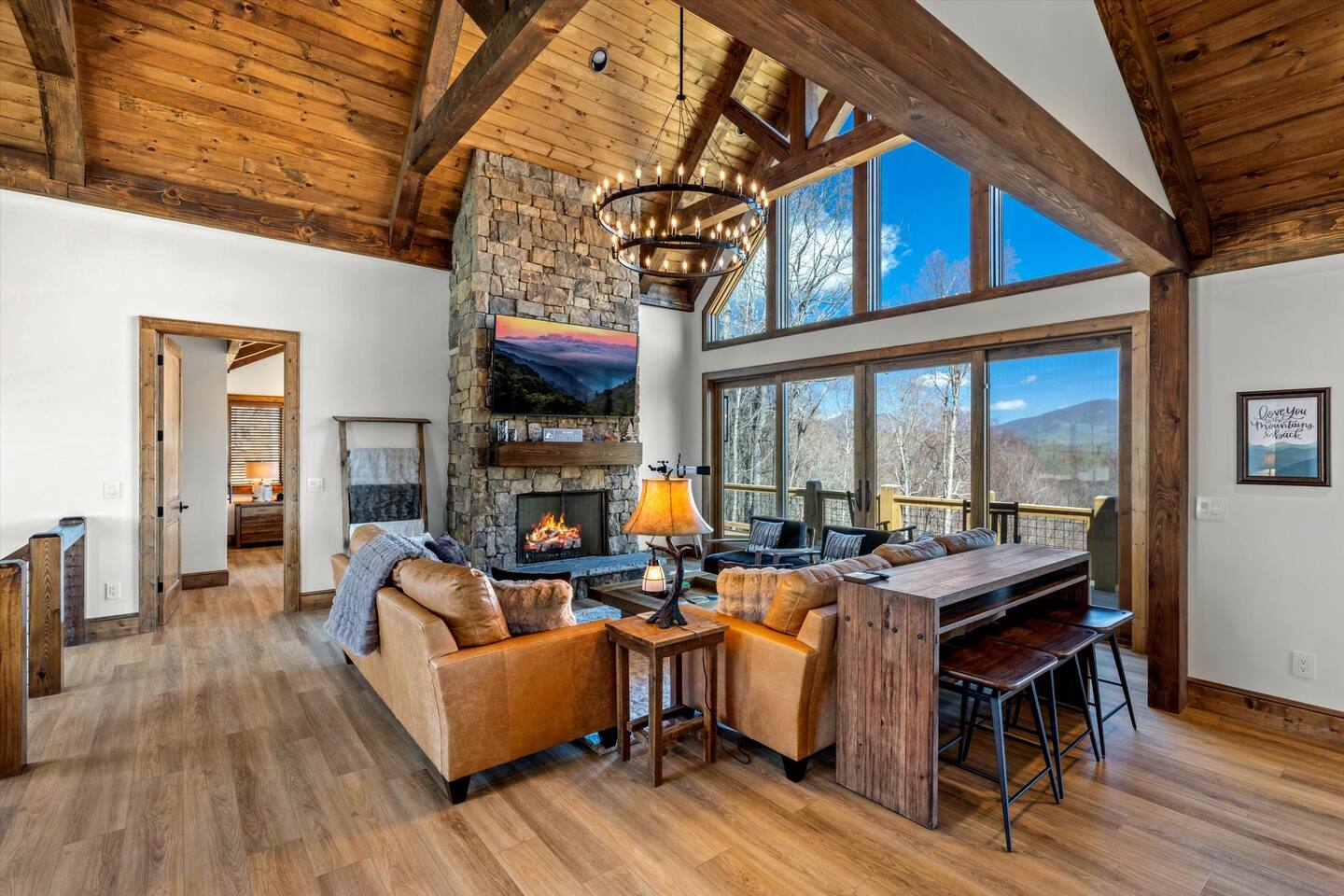 Welcome to Poplar Peaks, a newly built (2024) luxury cabin in Boone, NC, ideally located near App State and Downtown Boone with stunning long-range, unobstructed Blue Ridge mountain views.
