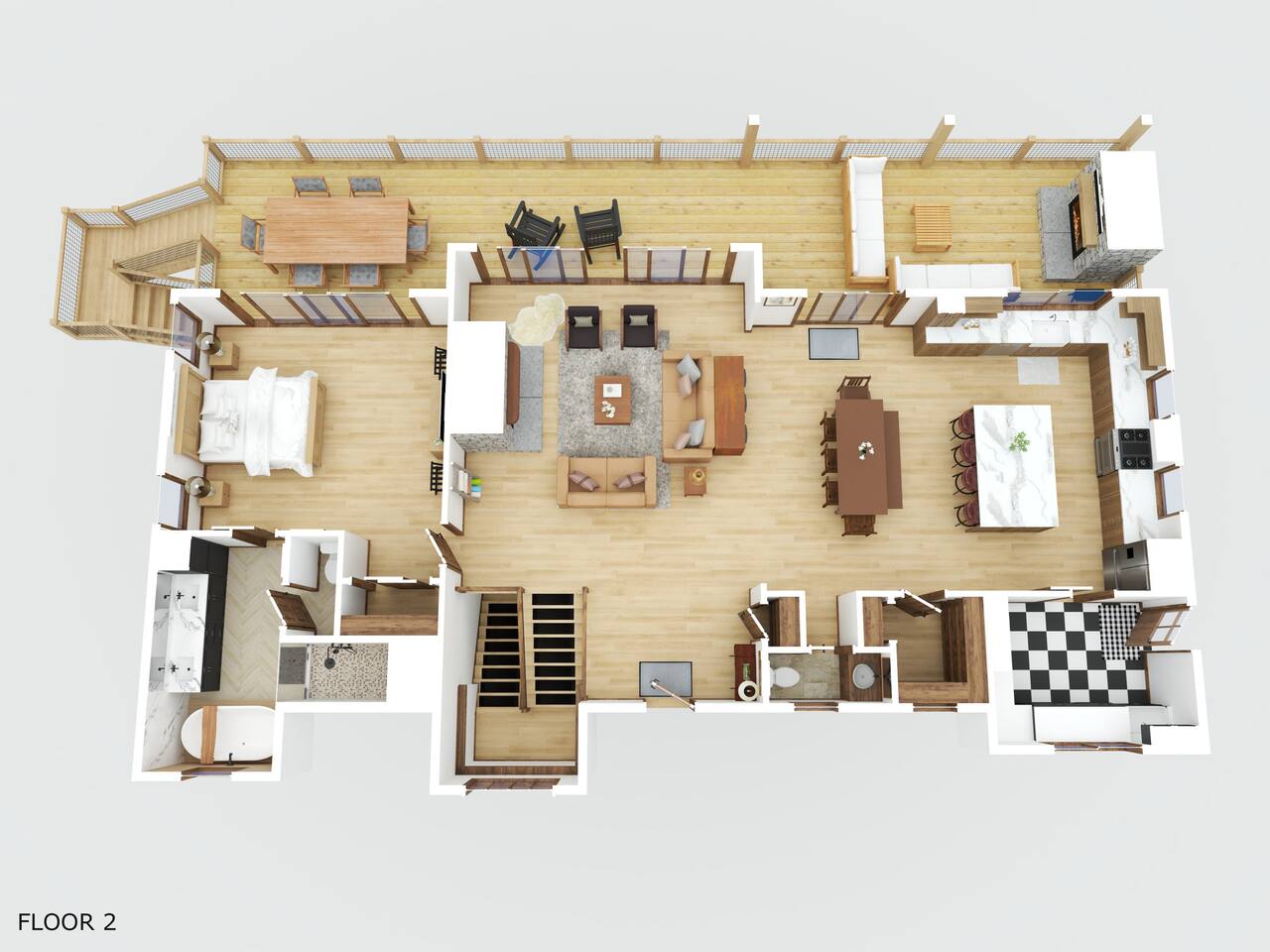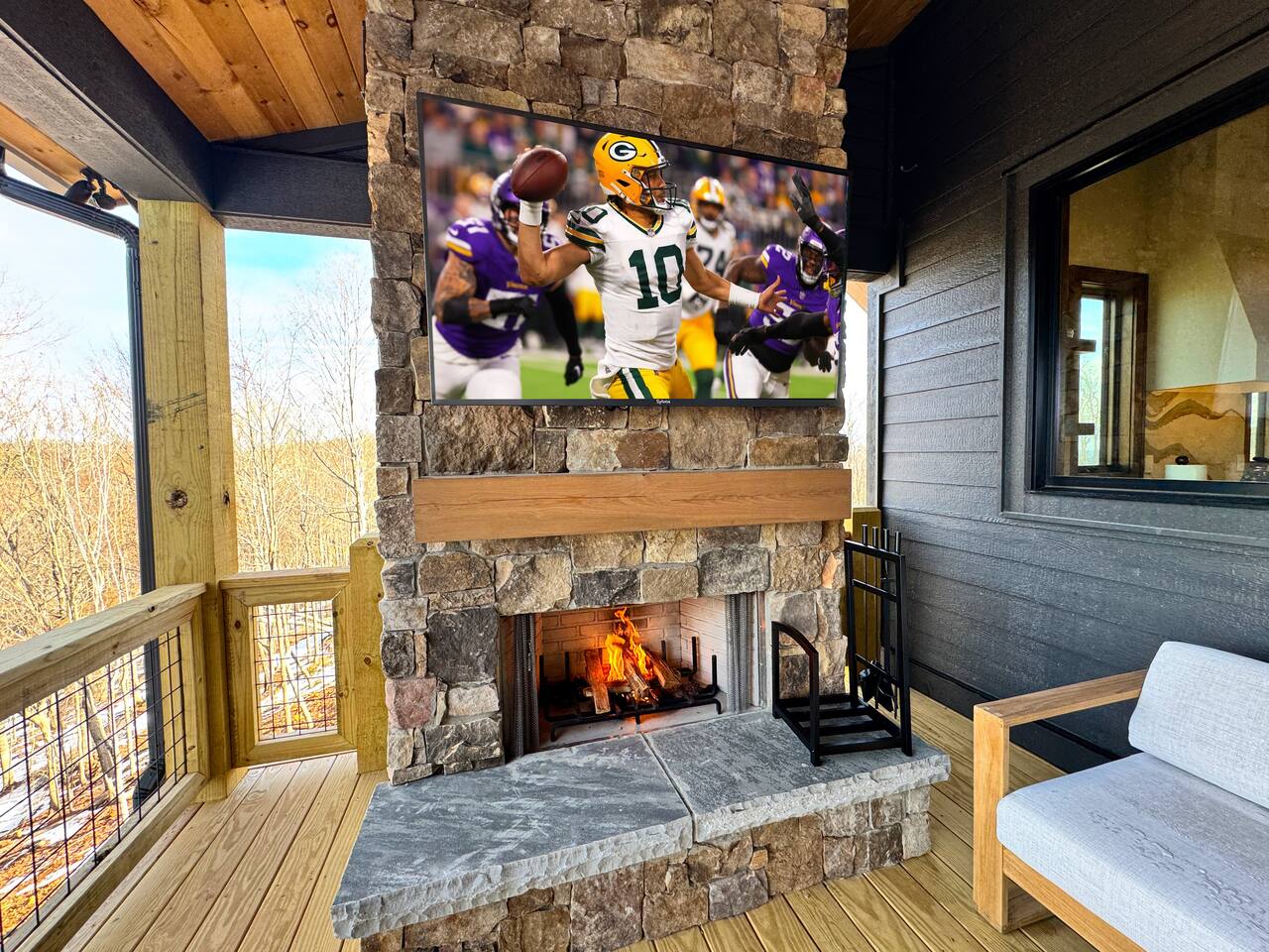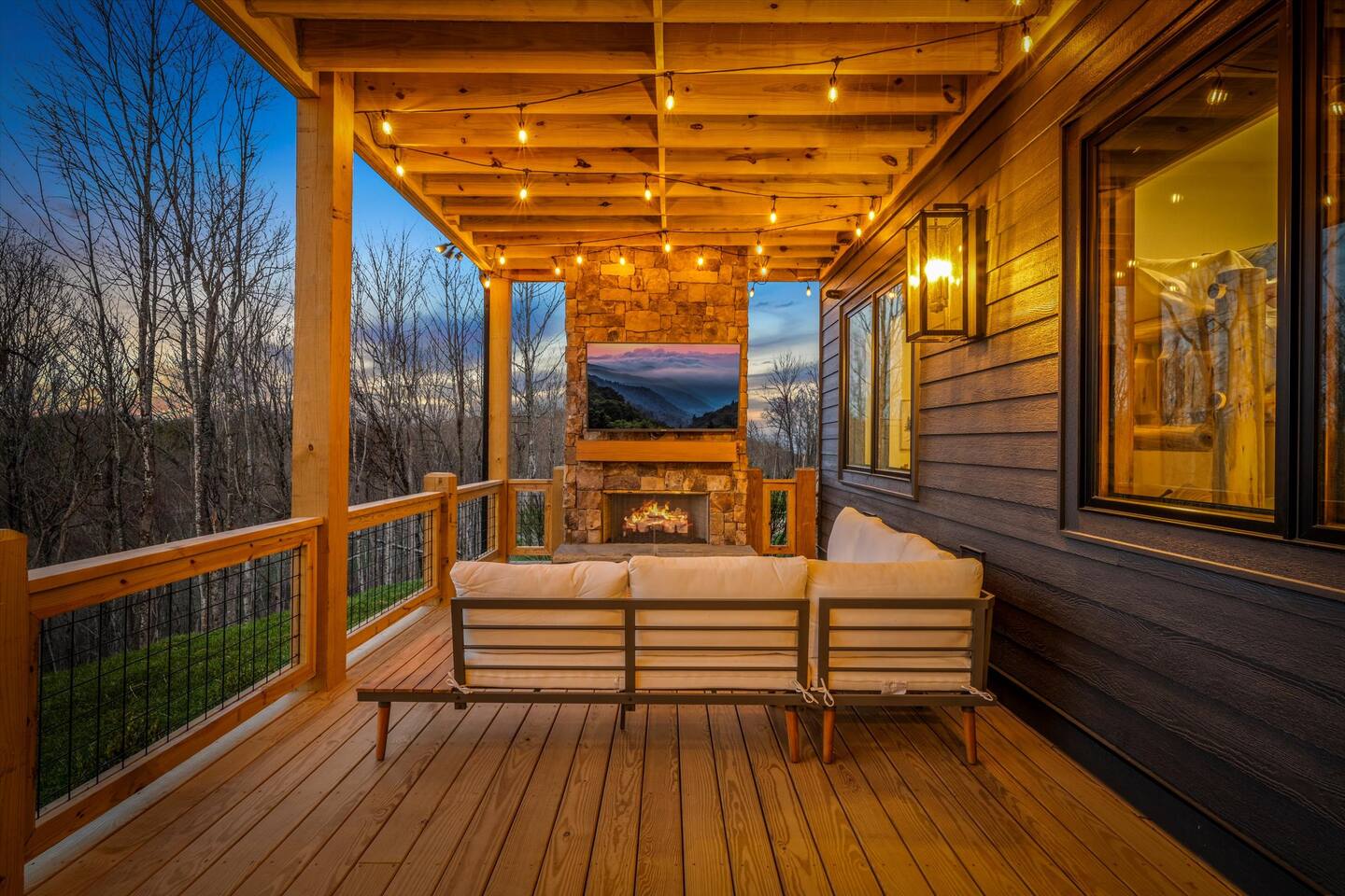 • Upper Deck – wood burning fireplace, 65” Smart 4K TV, outdoor Dining table for 8