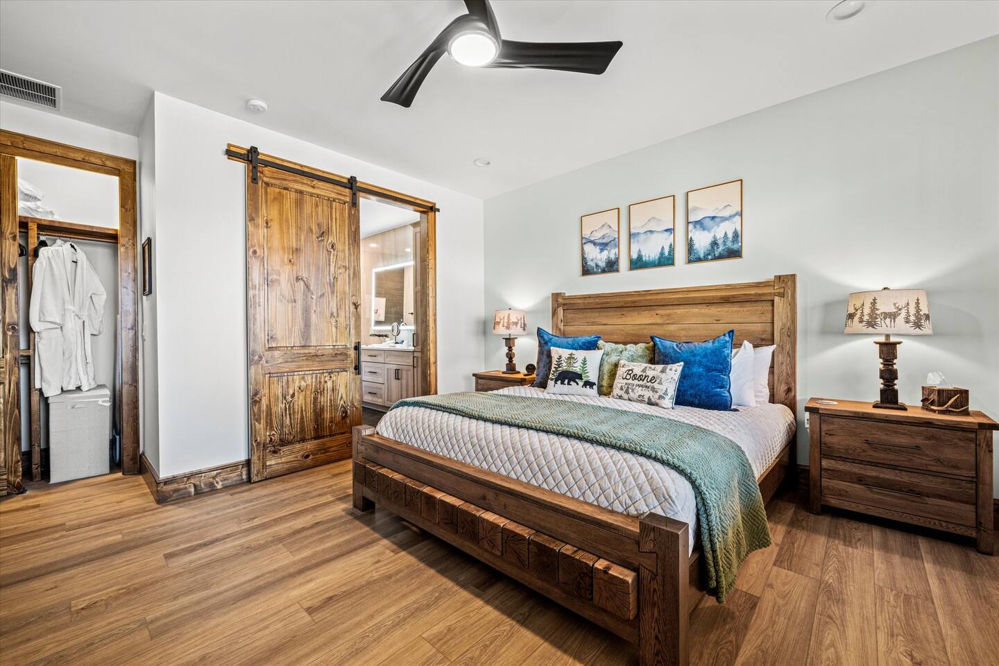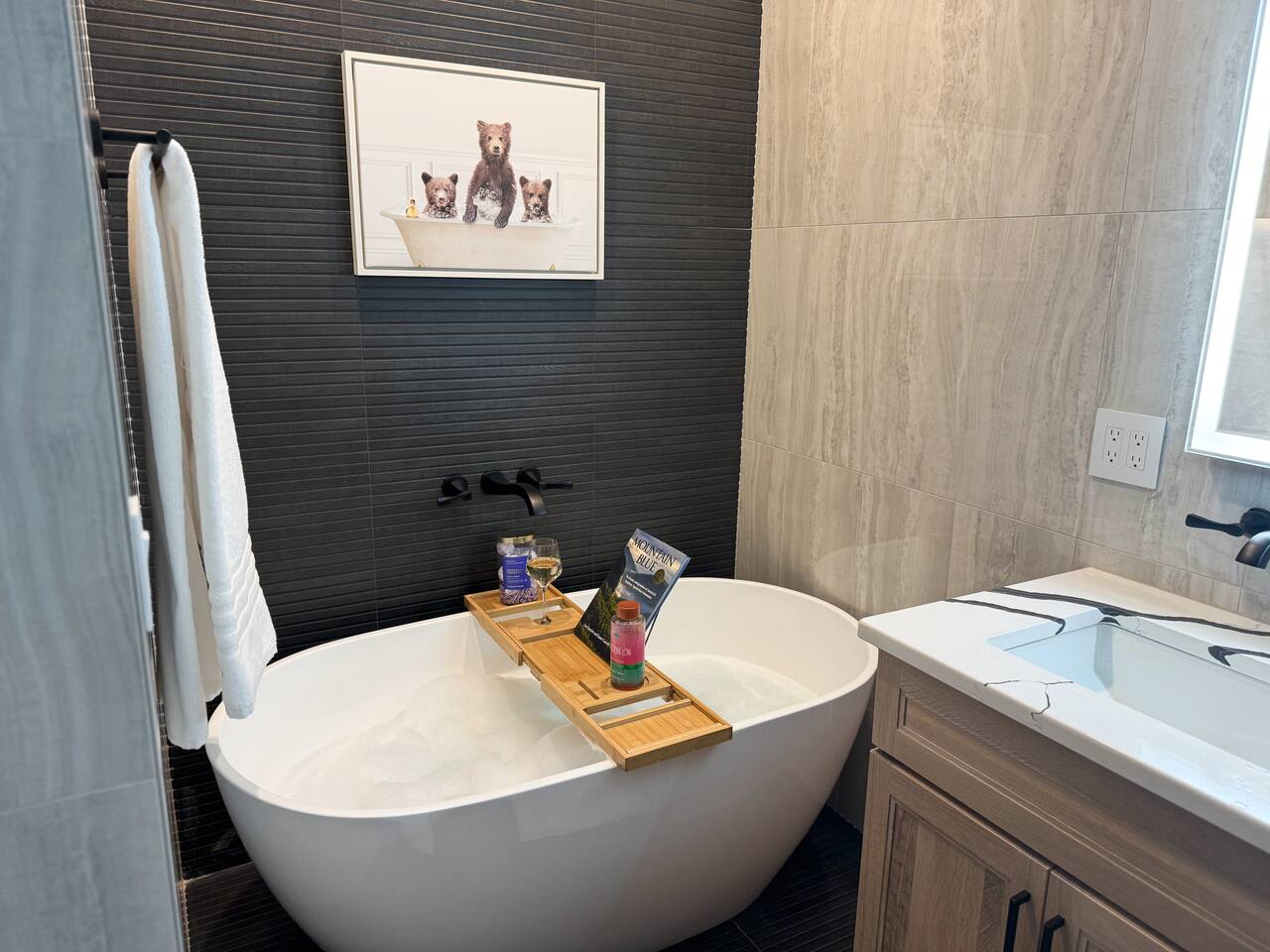 • Bedroom 3 – luxury Leesa KING bed, 65” Smart 4k TV, electrical and USB outlets on each side of the bed