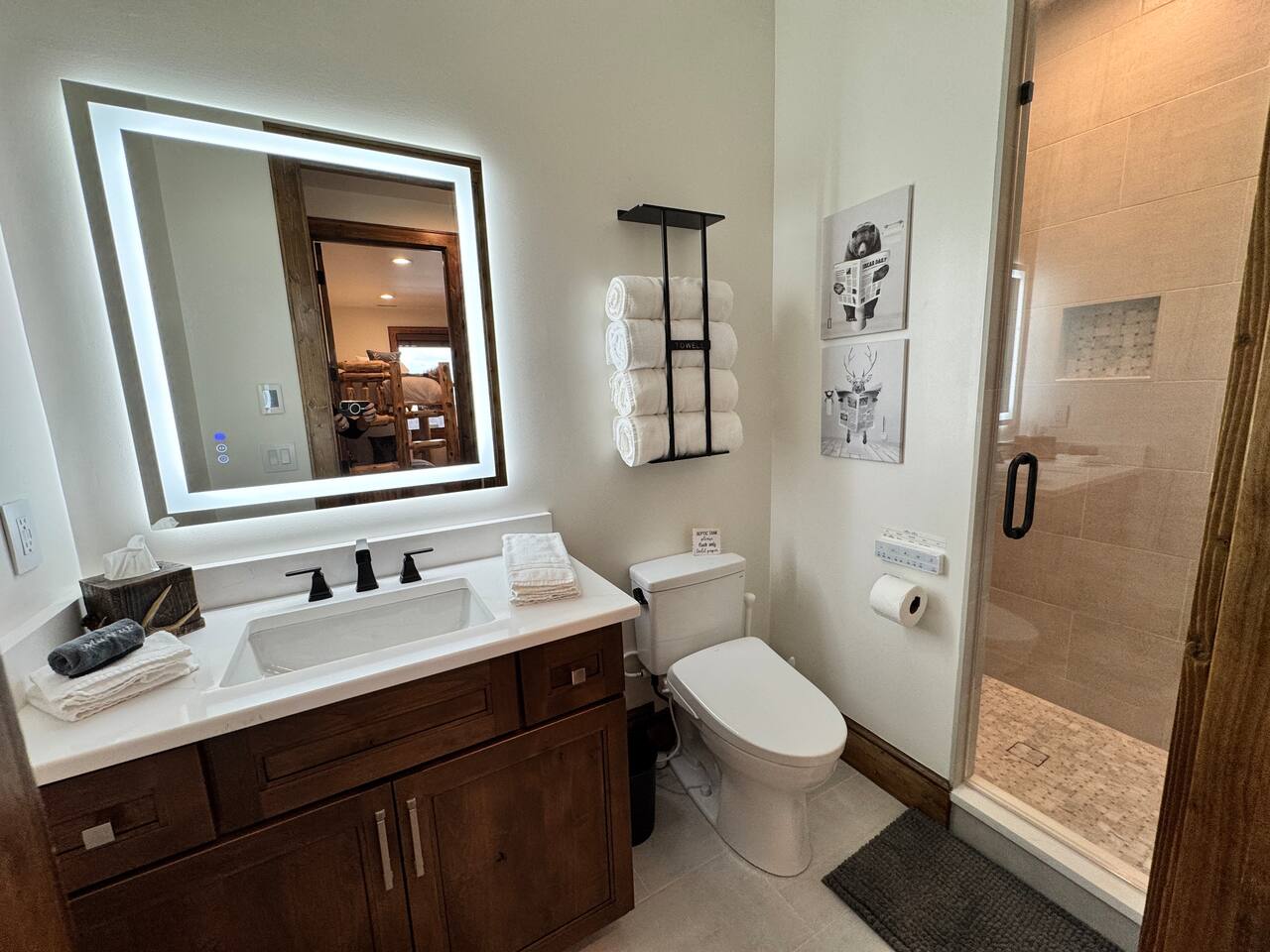 The cabin is fully loaded with most everything you would need in a Kitchen and Bathroom. We even provide luggage racks in all bedrooms so you have a place to put everything.
