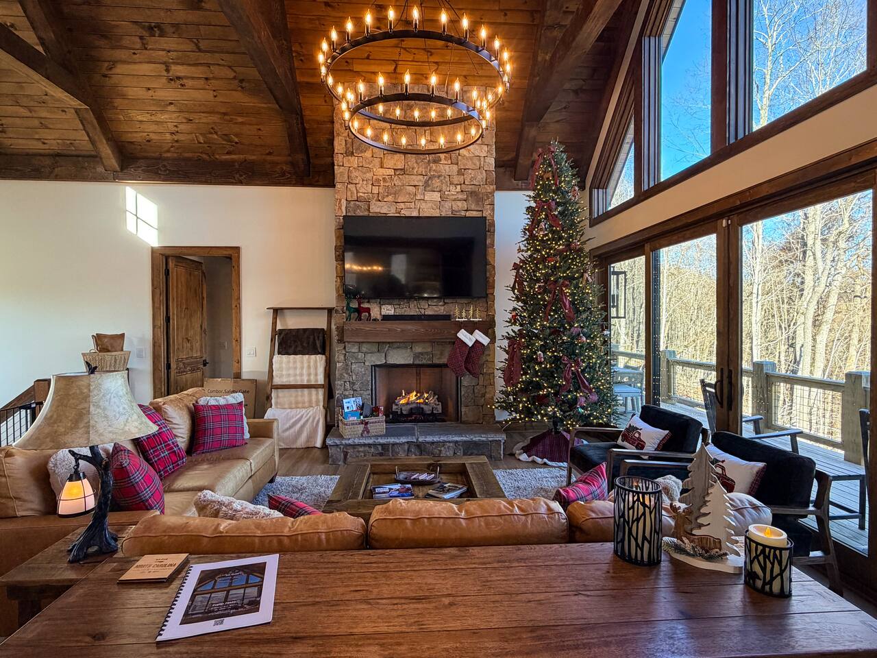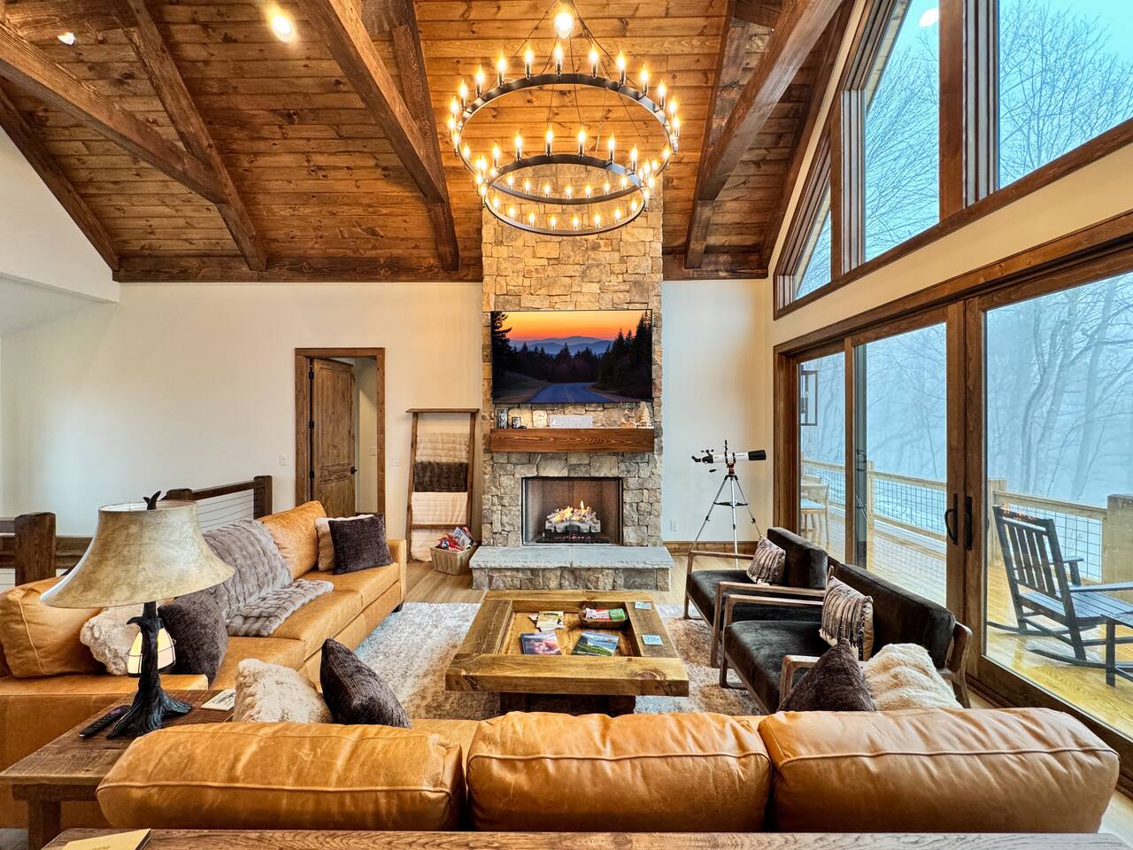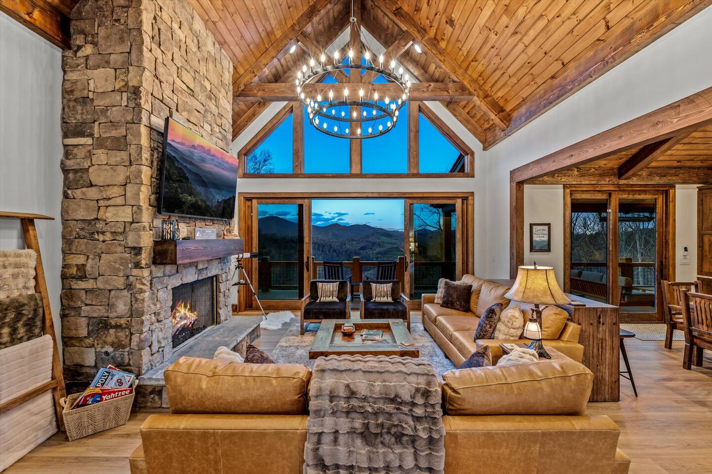 With four fireplaces, fire pit, and hot tub, Poplar Peaks is perfect for a multi-family getaway or a relaxing escape for couples.