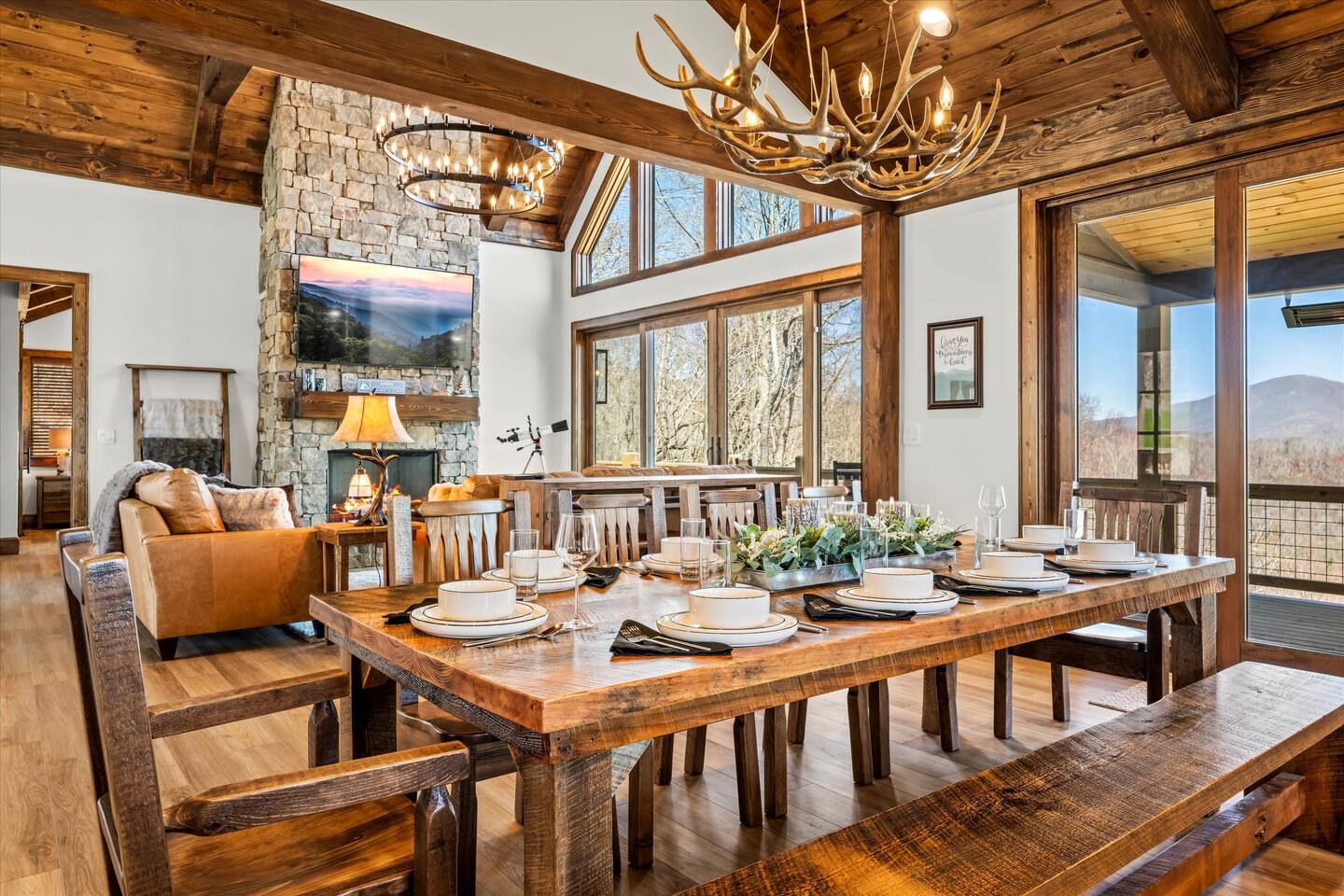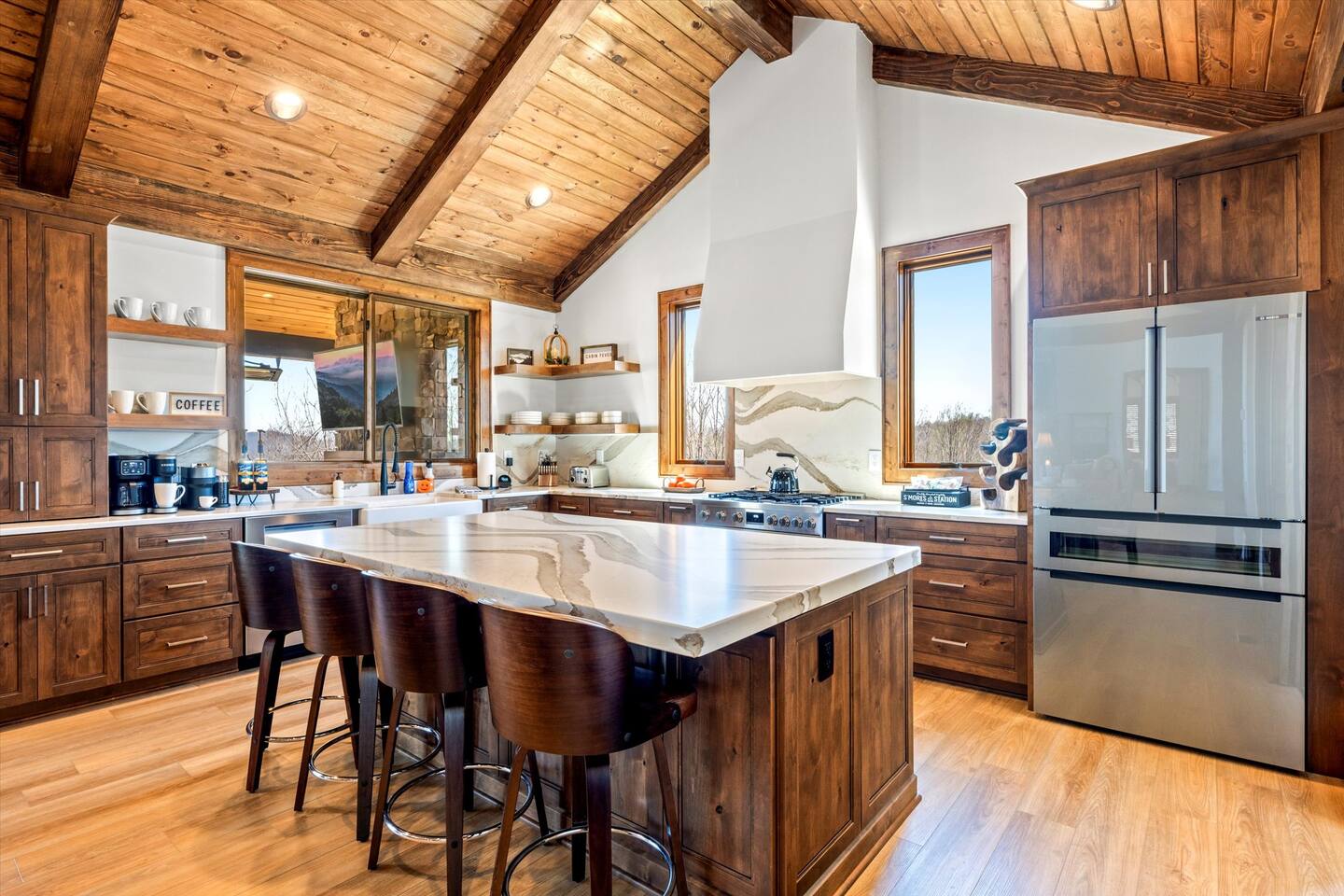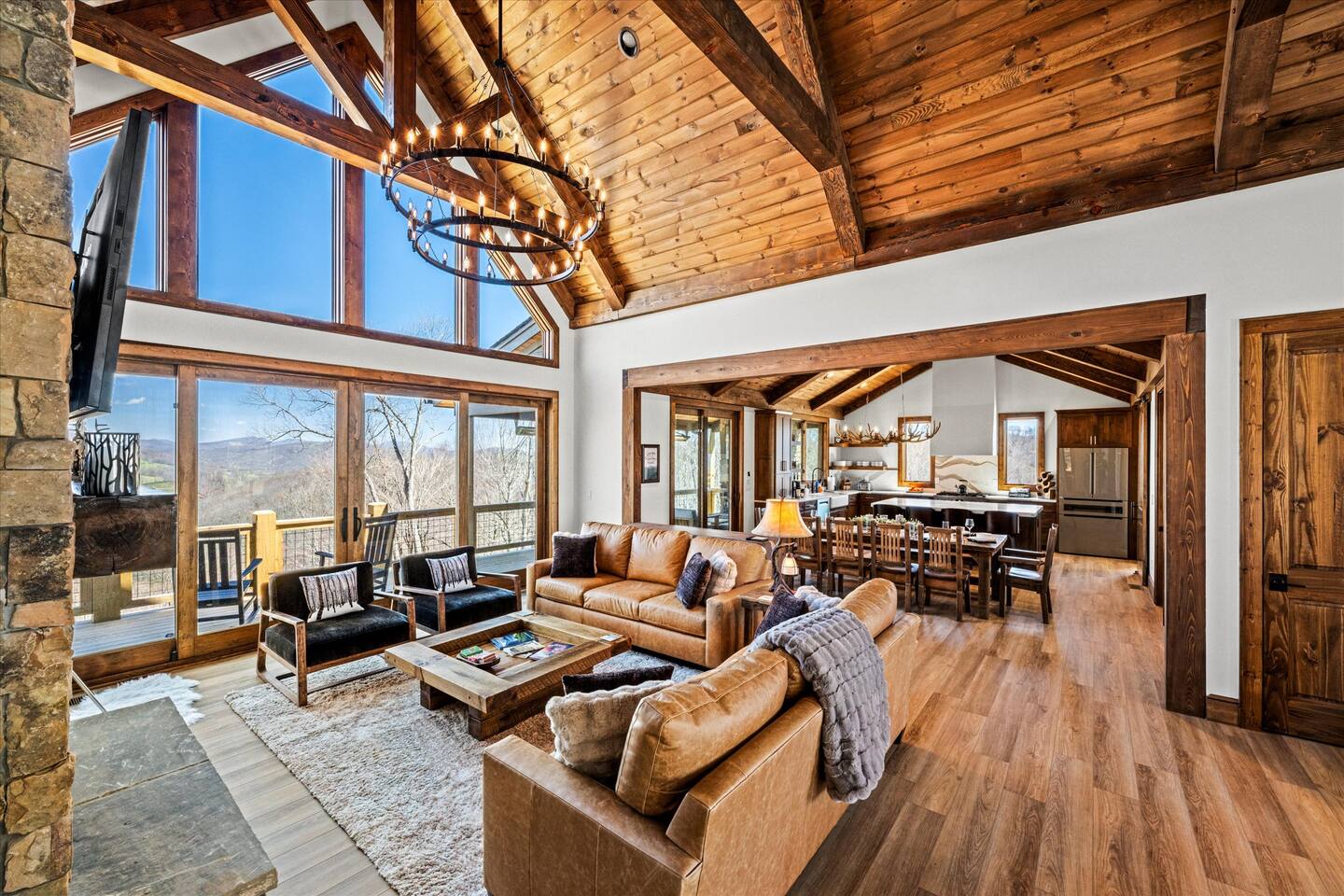 With four fireplaces, fire pit, and hot tub, Poplar Peaks is perfect for a multi-family getaway or a relaxing escape for couples.