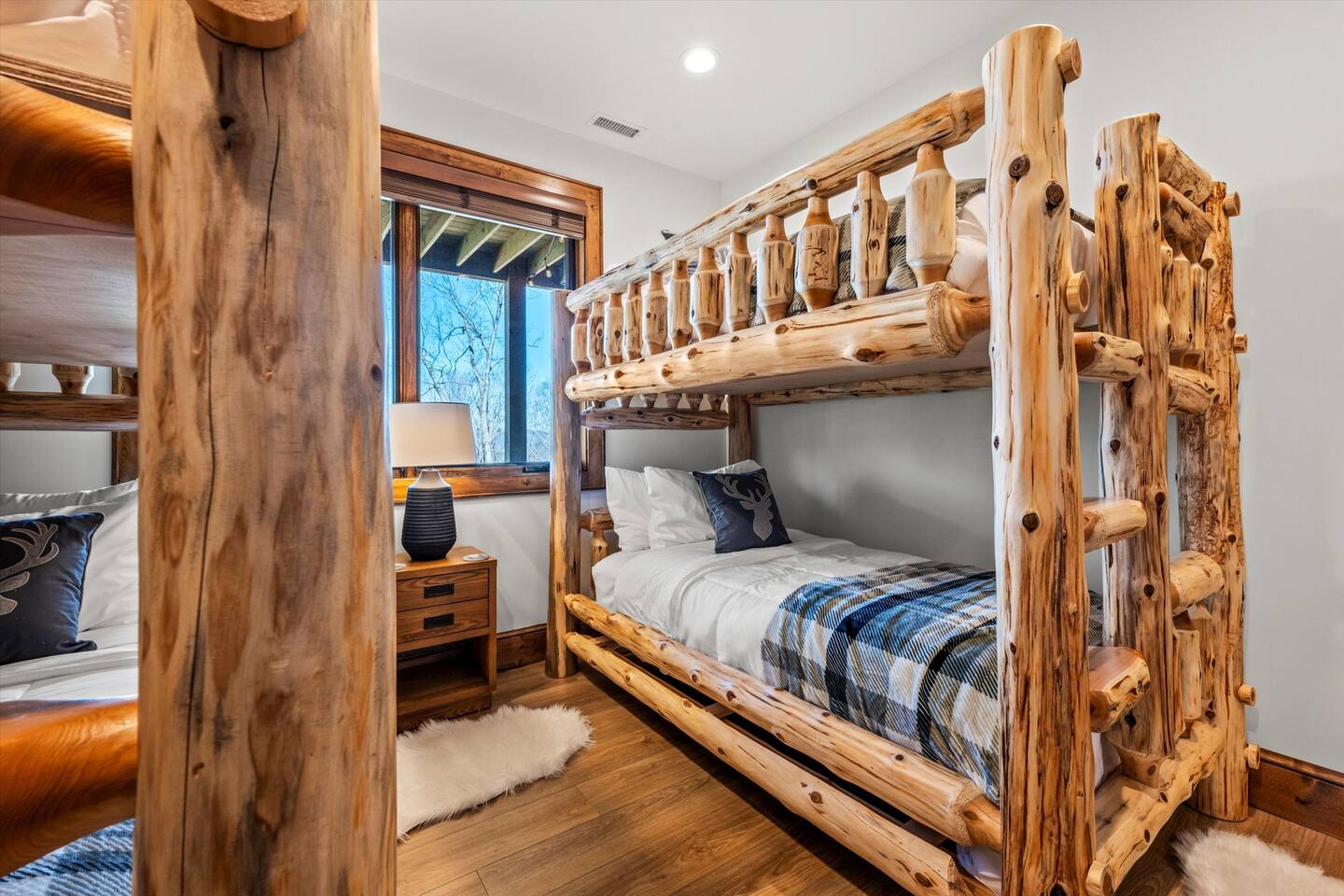 • Bedroom 4 – (2) authentic log Twin Bunk Beds with Leesa mattresses