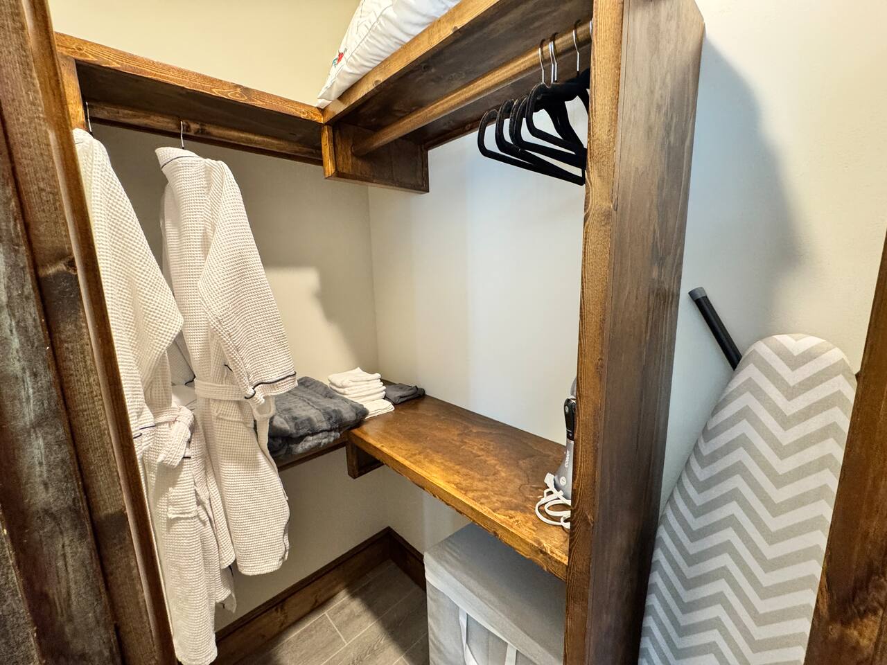 Guests will have access to the entire cabin with the exception of two spaces - One Mechanical/Electrical closet in the basement and an Owner's/Supplies closet on the main floor. Both rooms have keyed access to prevent guests from entering.